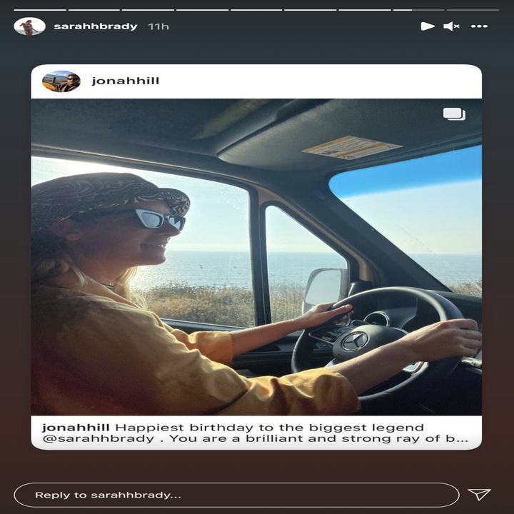 @sarahhbrady / @jonahhill / Via Instagram: @https://www.instagram.com/stories/sarahhbrady/2689107601759542782/, @sarahhbrady / @jonahhill / Via Instagram: @https://www.instagram.com/stories/sarahhbrady/2689108652515102837/